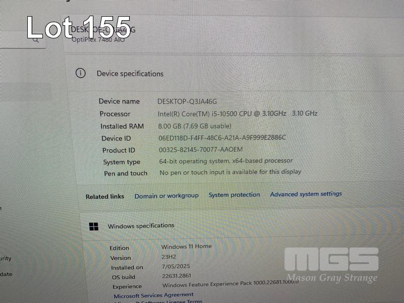 ALL-IN-ONE PC, DELL OPTIPLEX 7480, CORE i5 10500 (10TH GEN) @ 3.1GHz, 8GB DDR4 RAM, 512GB NVMe M.2 SSD, INBUILT 23.8" FHD WIDESCREEN (1920x1080), INTEL HD VIDEO, WEBCAM, 5 x USB, 1 x USB-C, WINDOWS 11 HOME INSTALLED, KEYBOARD & MOUSE S/N:7HX54F3
