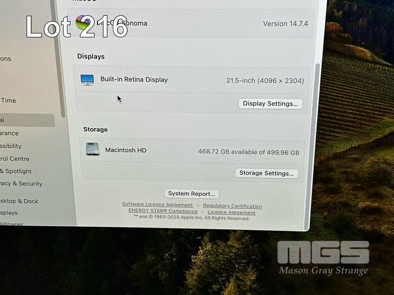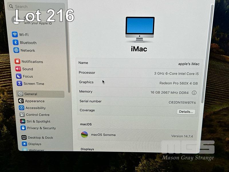 APPLE iMAC (A2116), CORE i5 8500 (8TH GEN) @ 3GHz, 16GB DDR4 RAM, 512GB SSD, BUILT-IN 21.5" RETINA DISPLAY (4096x2304), 4GB RADEON PRO 560X VIDEO, Wi-Fi, BLUETOOTH, MAC OS 14 INSTALLED, APPLE KEYBOARD & KENSINGTON MOUSE