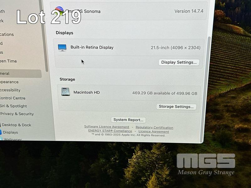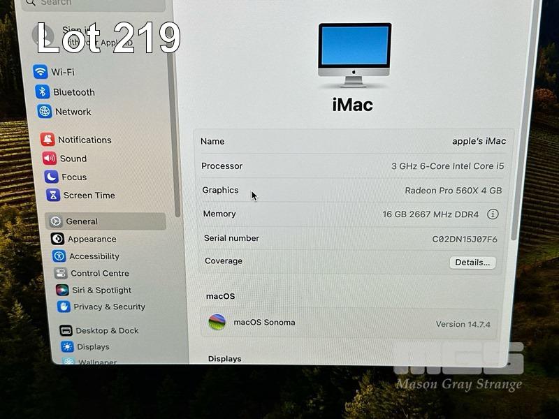 APPLE iMAC (A2116), CORE i5 8500 (8TH GEN) @ 3GHz, 16GB DDR4 RAM, 512GB SSD, BUILT-IN 21.5" RETINA DISPLAY (4096x2304), 4GB RADEON PRO 560X VIDEO, Wi-Fi, BLUETOOTH, MAC OS 14 INSTALLED, APPLE KEYBOARD & KENSINGTON MOUSE S/N:C02DN15J07F6