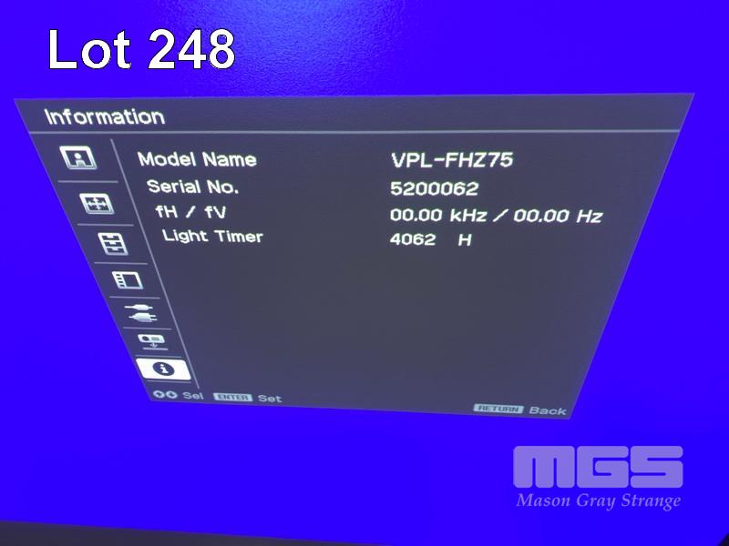 LASER PROJECTOR, SONY VPL-FHZ75 WUXGA LARGE VENUE 3LCD (BLACK), 6,500 LUMENS, 4,062 HOURS SHOWING WITH REMOTE S/N:5200062