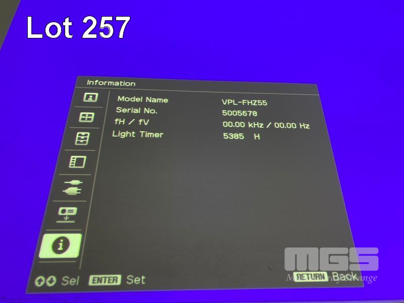 LASER PROJECTOR, SONY VPL-FHZ55 WUXGA 3LCD, 4,000 LUMENS, 5,385 HOURS SHOWING (NO REMOTE) S/N:5005678