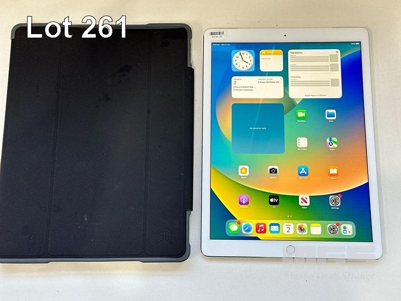 APPLE iPAD PRO 12.9 INCH, 128GB, Wi-Fi, CELLULAR, SILVER, MODEL ML2J2X/A, A1652 WITH COVER S/N:DLXSG0G1GMW4