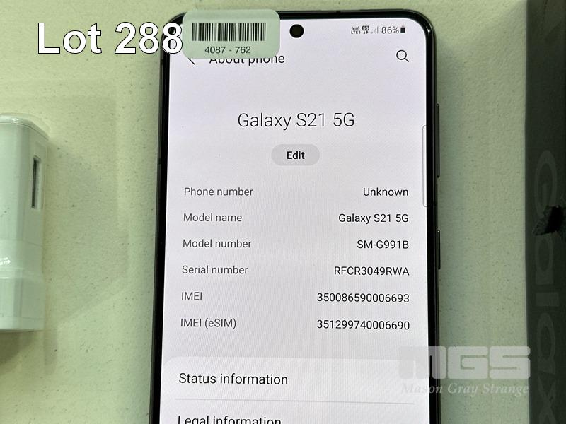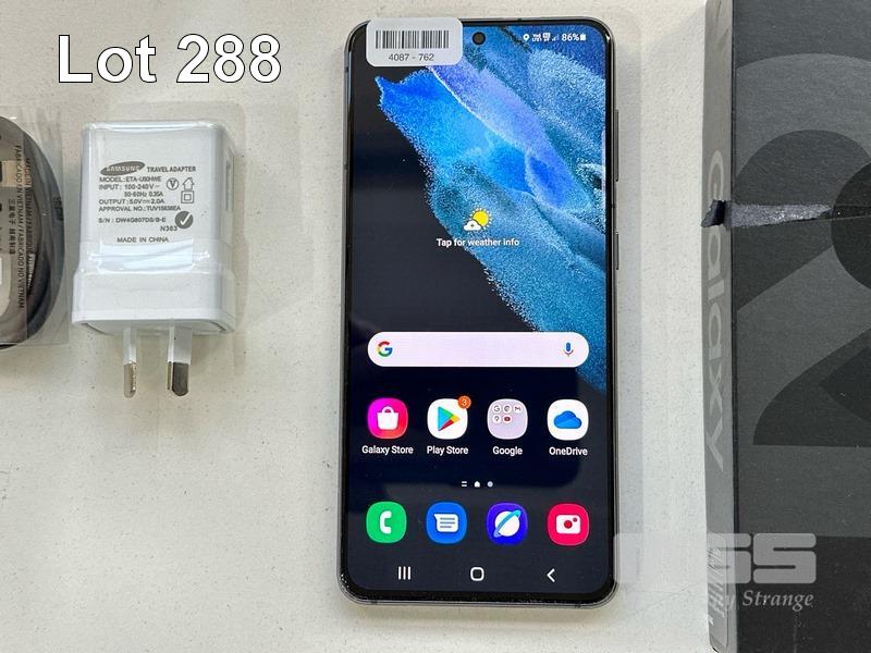 SAMSUNG GALAXY S21 5G SMARTPHONE, MODEL SM-G991B, 256GB WITH USB-C CABLE & CHARGER S/N:RFCR3049RWA
