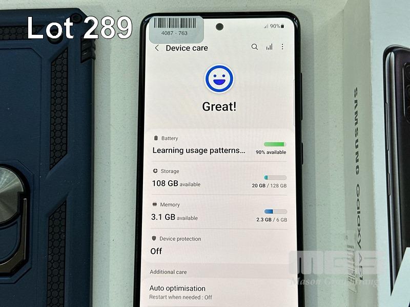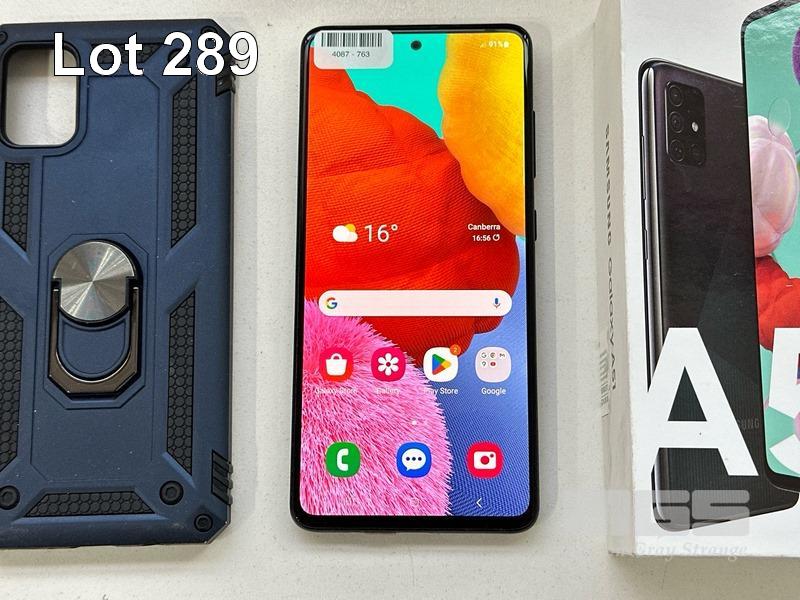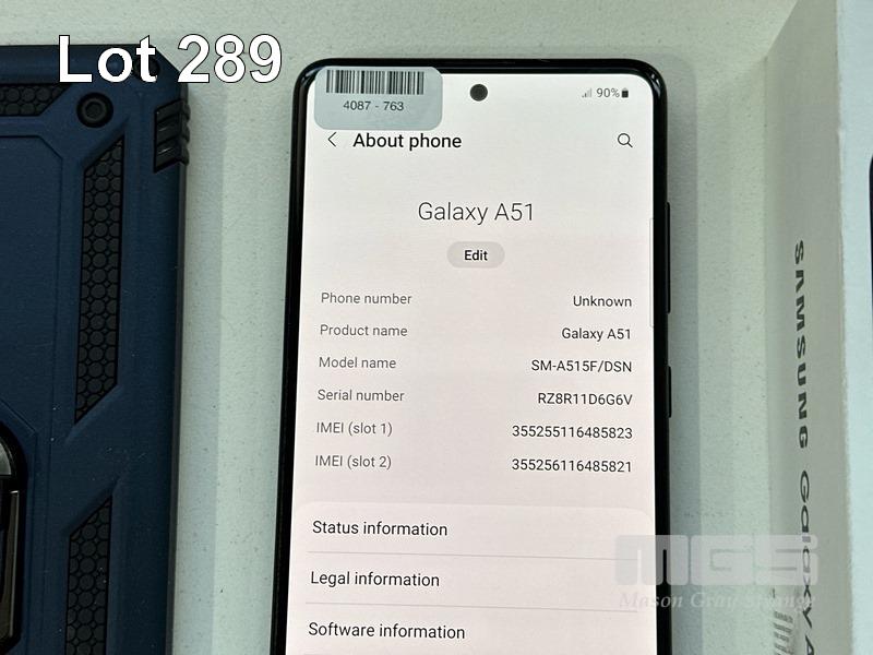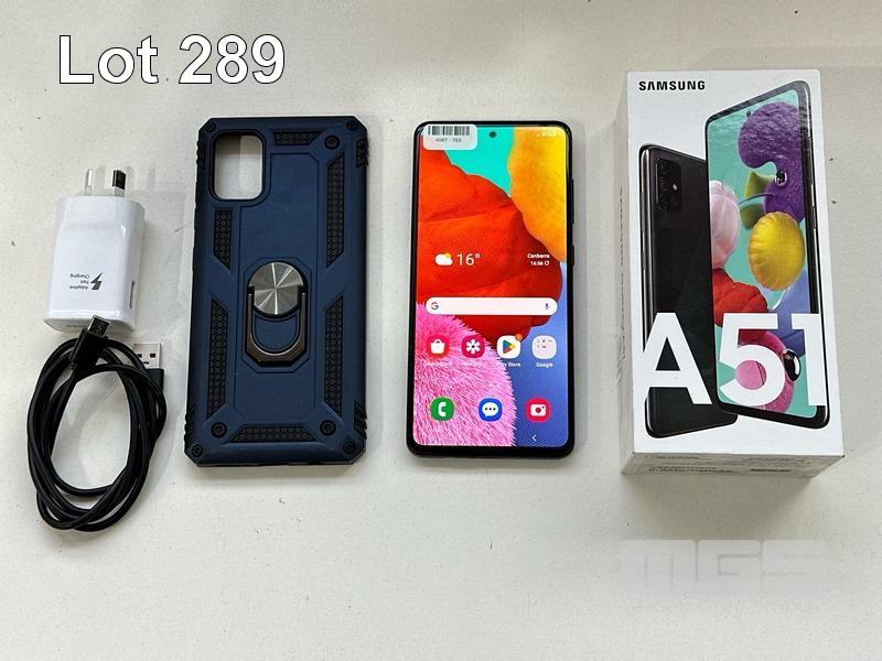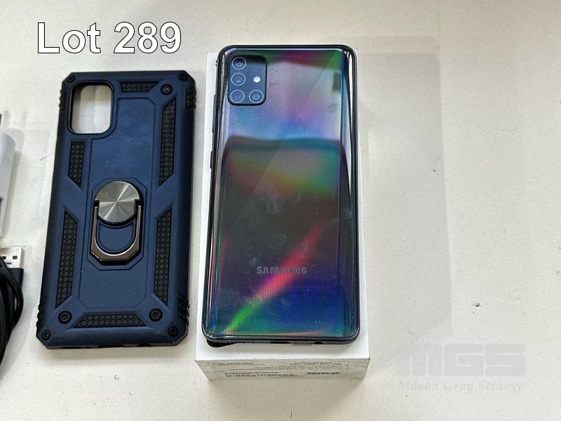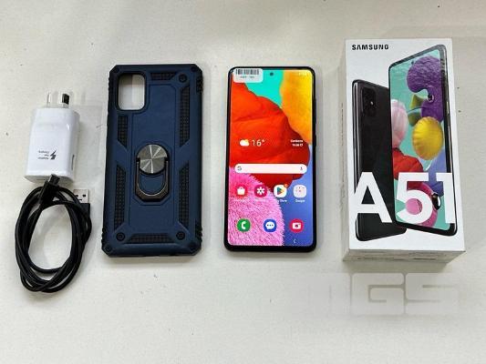 SAMSUNG GALAXY A51 SMARTPHONE, MODEL SM-A515F, 128GB WITH COVER, USB-C CABLE & CHARGER S/N:RZ8R11D6G6V