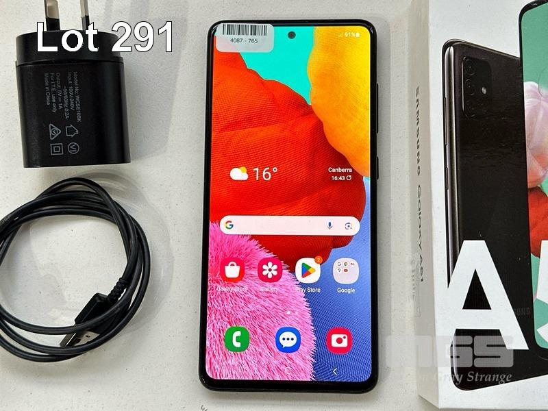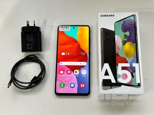 SAMSUNG GALAXY A51 SMARTPHONE, MODEL SM-A515F, 128GB WITH USB-C CABLE & CHARGER S/N:RZ8R11ASFQX