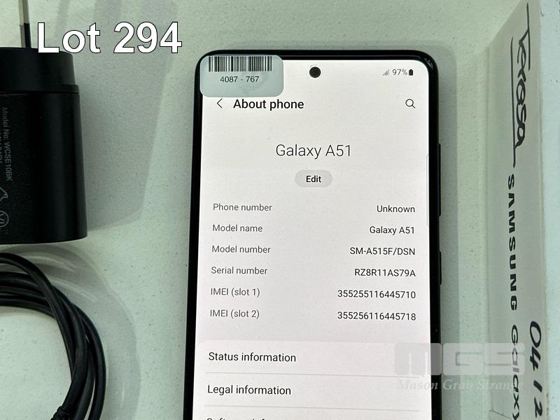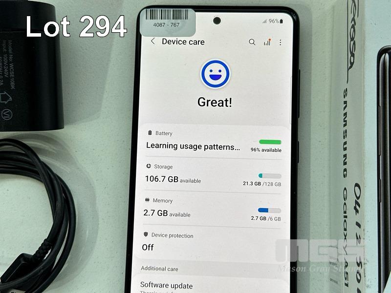 SAMSUNG GALAXY A51 SMARTPHONE, MODEL SM-A515F, 128GB WITH USB-C CABLE & CHARGER