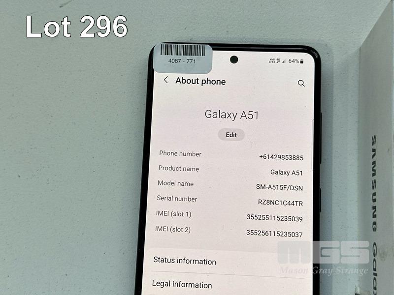 SAMSUNG GALAXY A51 SMARTPHONE, MODEL SM-A515F, 128GB (NO CABLE, NO CHARGER) S/N:RZ8NC1C44TR