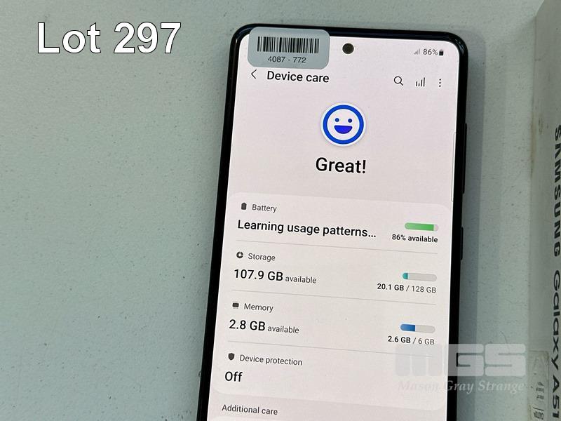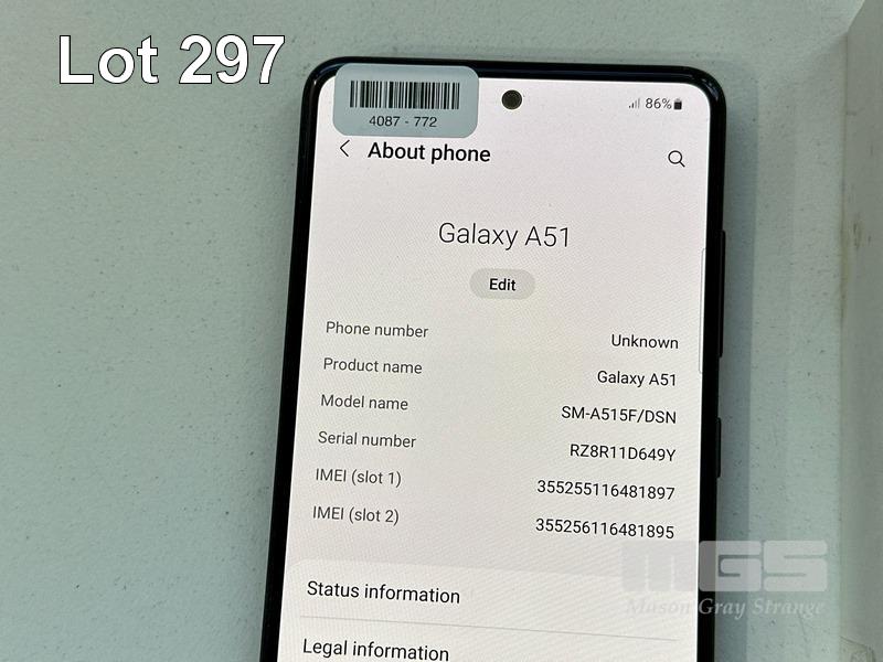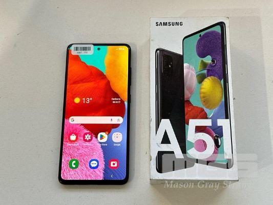 SAMSUNG GALAXY A51 SMARTPHONE, MODEL SM-A515F, 128GB (NO CABLE, NO CHARGER) S/N:RZ8R11D649Y
