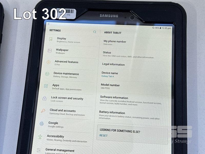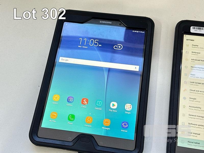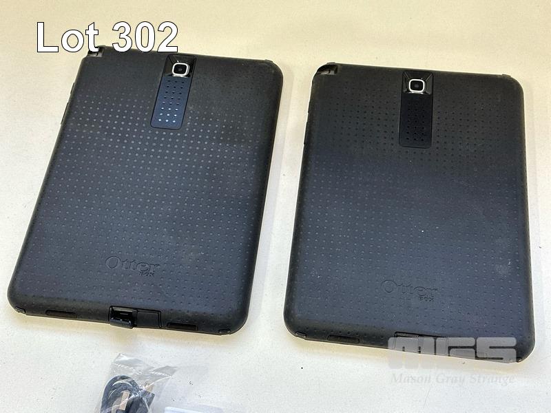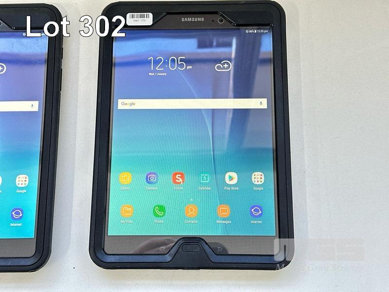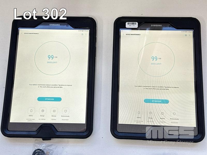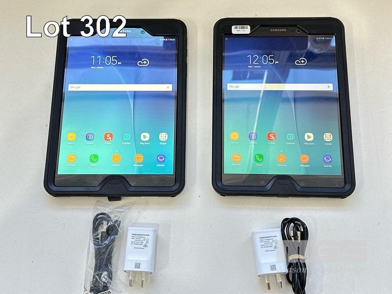 2 x SAMSUNG GALAXY TAB A TABLET PCS, MODEL SM-P555, 16GB WITH OTTERBOX COVERS, CABLES & CHARGERS