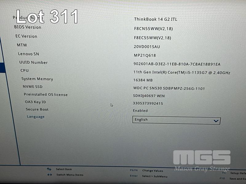 LAPTOP, LENOVO THINKBOOK 14 G2 ITL, TYPE 20VD, CORE i5 1135G7 (11TH GEN) @ 2.4GHz, 16GB DDR4 RAM, 256GB NVMe SSD, 14" WIDESCREEN (1920x1080), INTEL IRIS Xe GRAPHICS, Wi-Fi, BLUETOOTH, WINDOWS 11 PRO INSTALLED & USB-C POWER SUPPLY S/N:MP21Q618