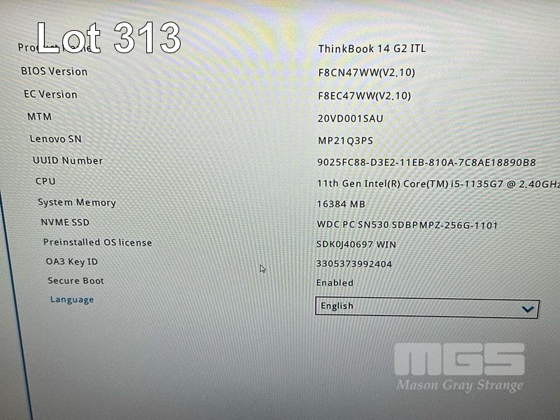 LAPTOP, LENOVO THINKBOOK 14 G2 ITL, TYPE 20VD, CORE i5 1135G7 (11TH GEN) @ 2.4GHz, 16GB DDR4 RAM, 256GB NVMe SSD, 14" WIDESCREEN (1920x1080), INTEL IRIS Xe GRAPHICS, Wi-Fi, BLUETOOTH, WINDOWS 11 PRO INSTALLED & USB-C POWER SUPPLY S/N:MP21Q3PS