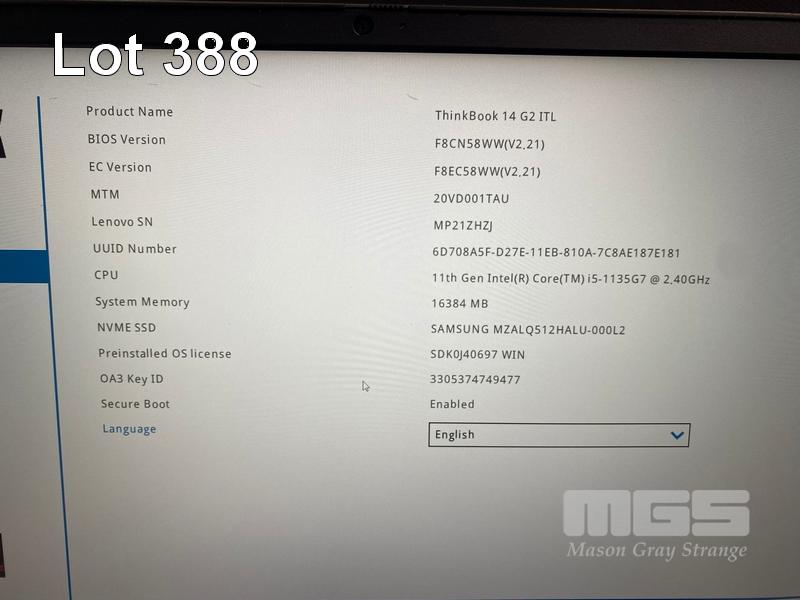 LAPTOP, LENOVO THINKBOOK 14 G2 ITL, TYPE 20VD, CORE i5 1135G7 (11TH GEN) @ 2.4GHz, 16GB DDR4 RAM, 512GB NVMe SSD, 14" WIDESCREEN (1920x1080), INTEL IRIS Xe GRAPHICS, Wi-Fi, BLUETOOTH, WINDOWS 11 PRO INSTALLED & USB-C POWER SUPPLY (NOTE: CRACK ON SCREEN FRAME, MARKS ON SCREEN) S/N:MP21ZHZJ