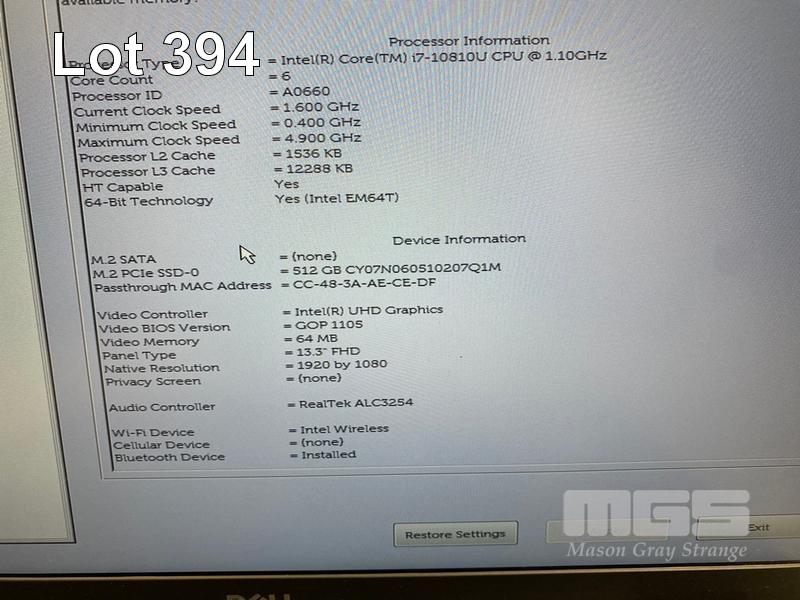 LAPTOP, DELL LATITUDE 7310, CORE i7 10810U (10TH GEN) @ 1.1GHz, 16GB DDR4 RAM, 512GB NVMe M.2 SSD, 13.3" WIDESCREEN (1920x1080), INTEL UHD GRAPHICS, Wi-Fi, BLUETOOTH, WINDOWS 11 PRO INSTALLED & USB-C POWER SUPPLY S/N:4FCB273