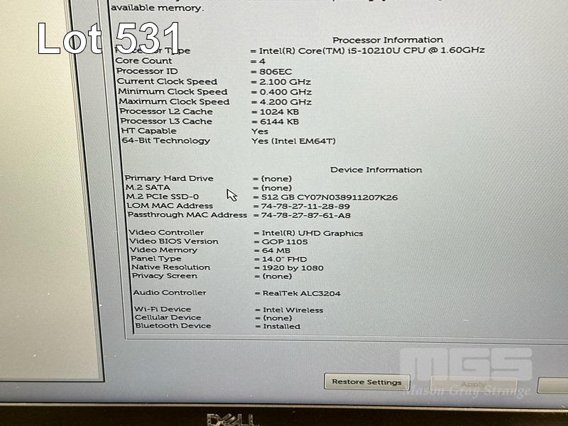 LAPTOP, DELL LATITUDE 5410, CORE i5 10210U (10TH GEN) @ 1.6GHz, 8GB DDR4 RAM, 512GB NVMe M.2 SSD, 14" WIDESCREEN (1920x1080), INTEL UHD GRAPHICS, Wi-Fi, BLUETOOTH, WINDOWS 11 HOME INSTALLED & POWER SUPPLY (NOTE: CASING PEELING) S/N:CCL6Q73