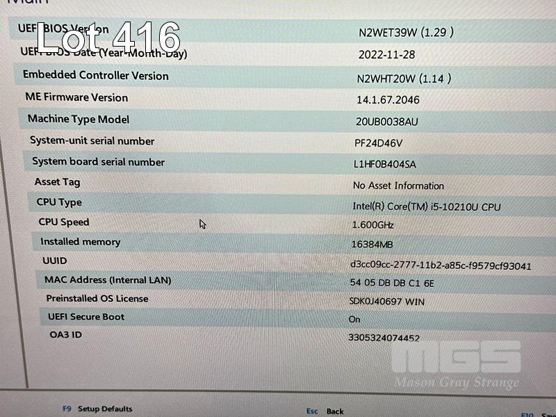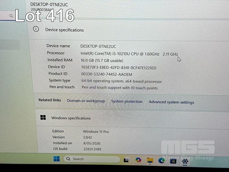 LAPTOP, LENOVO THINKPAD X1 YOGA (5TH GEN), TYPE 20UB, CORE i5 10210U (10TH GEN) @ 1.6GHz, 16GB DDR4 RAM, 256GB NVMe SSD, 14" TOUCHSCREEN (1920x1080), INTEL UHD GRAPHICS, Wi-Fi, BLUETOOTH, WINDOWS 11 PRO INSTALLED & USB-C POWER SUPPLY (NOTE: MINOR MARKS ON SCREEN) S/N:PF24D46V