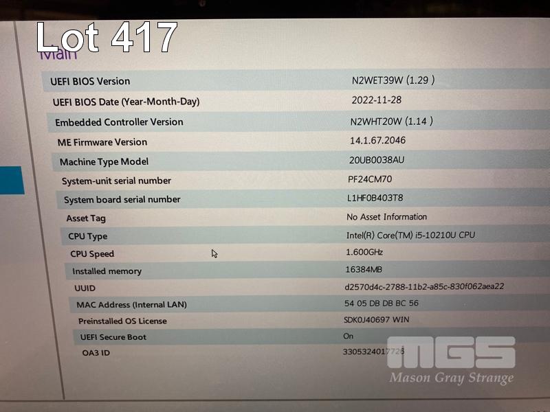 LAPTOP, LENOVO THINKPAD X1 YOGA (5TH GEN), TYPE 20UB, CORE i5 10210U (10TH GEN) @ 1.6GHz, 16GB DDR4 RAM, 256GB NVMe SSD, 14" TOUCHSCREEN (1920x1080), INTEL UHD GRAPHICS, Wi-Fi, BLUETOOTH, WINDOWS 11 PRO INSTALLED & USB-C POWER SUPPLY (NOTE: MARKS ON SCREEN) S/N:PF24CM70