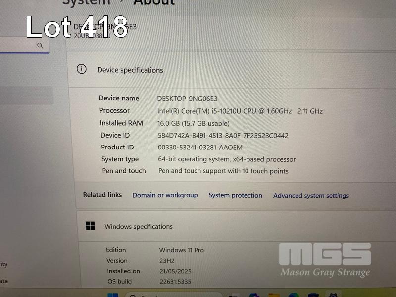 LAPTOP, LENOVO THINKPAD X1 YOGA (5TH GEN), TYPE 20UB, CORE i5 10210U (10TH GEN) @ 1.6GHz, 16GB DDR4 RAM, 256GB NVMe SSD, 14" TOUCHSCREEN (1920x1080), INTEL UHD GRAPHICS, Wi-Fi, BLUETOOTH, WINDOWS 11 PRO INSTALLED & USB-C POWER SUPPLY (NOTE: MARKS ON SCREEN) S/N:PF24D6DV