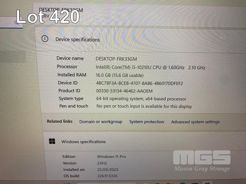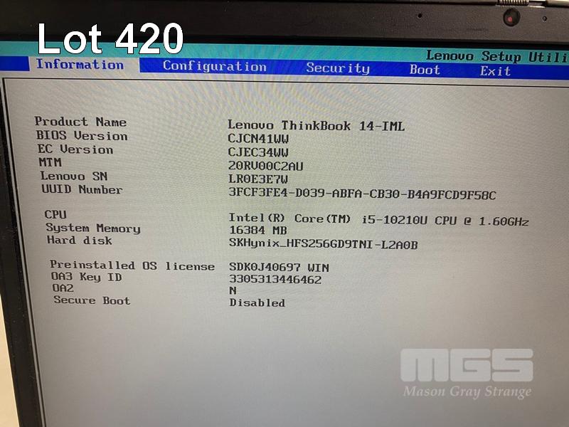 LAPTOP, LENOVO THINKBOOK 14-IML, TYPE 20RV, CORE i5 10210U (10TH GEN) @ 1.6GHz, 16GB DDR4 RAM, 256GB NVMe M.2 SSD, 14" WIDESCREEN (1920x1080), INTEL UHD GRAPHICS, Wi-Fi, BLUETOOTH, WINDOWS 11 PRO INSTALLED & POWER SUPPLY (NOTE: DENTS ON CASING, MARKS ON SCREEN) S/N:LR0E3E7W
