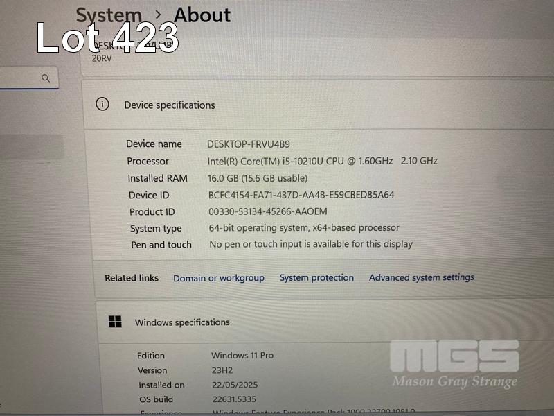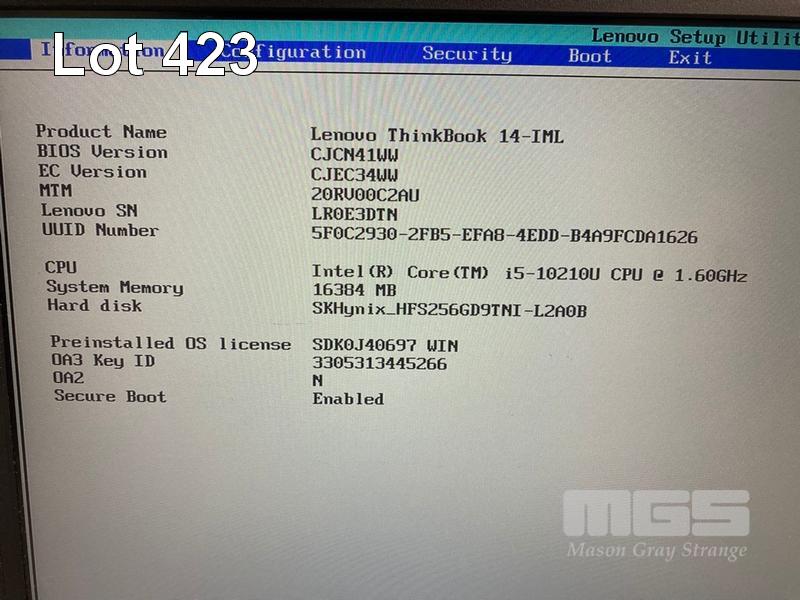 LAPTOP, LENOVO THINKBOOK 14-IML, TYPE 20RV, CORE i5 10210U (10TH GEN) @ 1.6GHz, 16GB DDR4 RAM, 256GB NVMe M.2 SSD, 14" WIDESCREEN (1920x1080), INTEL UHD GRAPHICS, Wi-Fi, BLUETOOTH, WINDOWS 11 PRO INSTALLED & POWER SUPPLY (NOTE: MISSING RUBBER STRIP UNDERNEATH, DENTS & SCRATCHES ON CASING, MARKS ON SCREEN) S/N:LR0E3DTN
