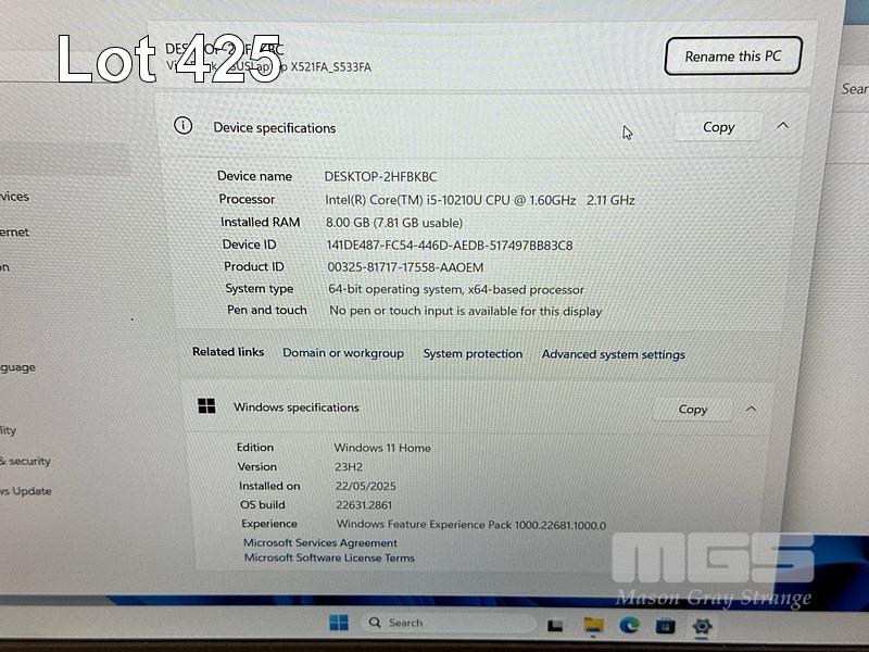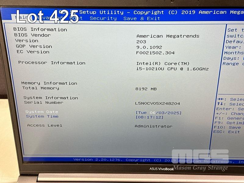 LAPTOP, ASUS VIVOBOOK S533F, CORE i5 10210U (10TH GEN) @ 1.6GHz, 8GB RAM, 512GB NVMe M.2 SSD, 15.6" WIDESCRREN (1920x1080), Wi-Fi, BLUETOOTH, WINDOWS 11 HOME INSTALLED & POWER SUPPLY (NOTE: MARKS ON SCREEN) S/N:L5N0CV05X248204