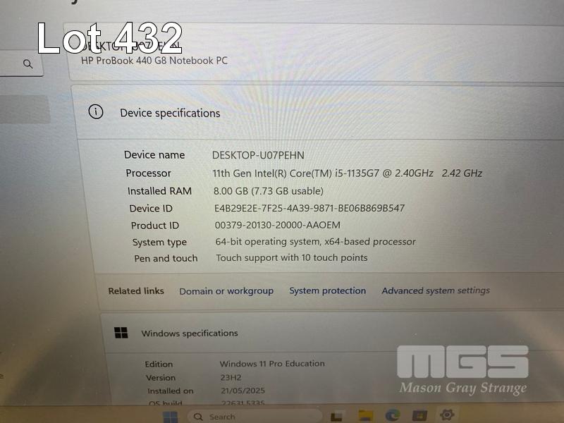 LAPTOP, HP PROBOOK 440 G8, CORE i5 1135G7 (11TH GEN) @ 2.4GHz, 8GB DDR4 RAM, 256GB NVMe M.2 SSD, 14" TOUCHSCREEN (1920x1080), INTEL UHD GRAPHICS, Wi-Fi, BLUETOOTH, WINDOWS 11 PRO EDUCATION INSTALLED & POWER SUPPLY (NOTE: MINOR DAMAGE & DENTS TO CASING, MINOR MARKS ON SCREEN) S/N:5CD2025JRK
