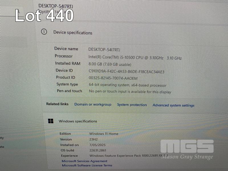 ALL-IN-ONE PC, DELL OPTIPLEX 7480, CORE i5 10500 (10TH GEN) @ 3.1GHz, 8GB DDR4 RAM, 512GB NVMe M.2 SSD, INBUILT 23.8" FHD WIDESCREEN (1920x1080), INTEL HD VIDEO, WEBCAM, 5 x USB, 1 x USB-C, WINDOWS 11 HOME INSTALLED, KEYBOARD & MOUSE S/N:4HX54F3