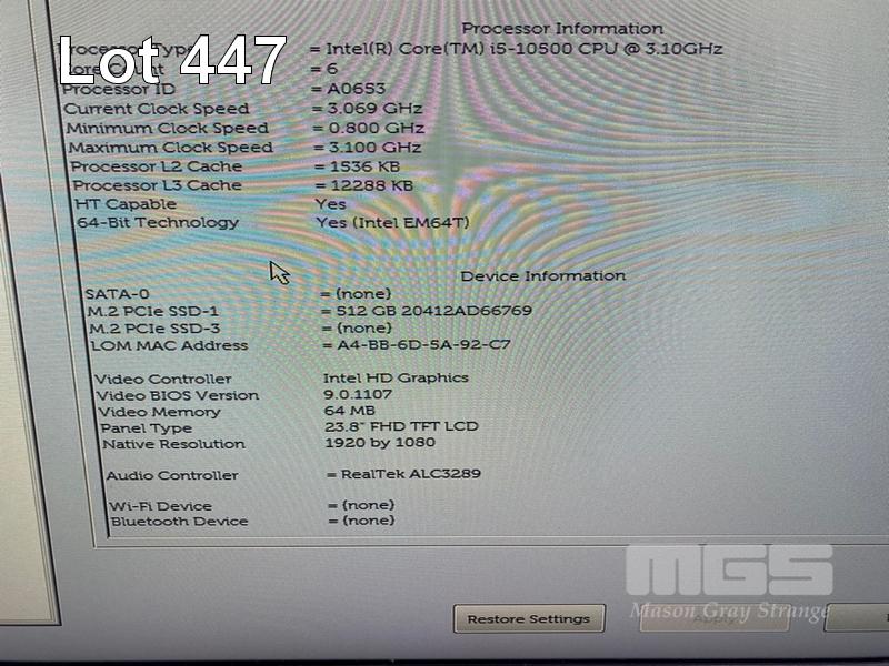 ALL-IN-ONE PC, DELL OPTIPLEX 7480, CORE i5 10500 (10TH GEN) @ 3.1GHz, 8GB DDR4 RAM, 512GB NVMe M.2 SSD, INBUILT 23.8" FHD WIDESCREEN (1920x1080), INTEL HD VIDEO, WEBCAM, 5 x USB, 1 x USB-C, WINDOWS 11 HOME INSTALLED, KEYBOARD & MOUSE S/N:1TKFL83