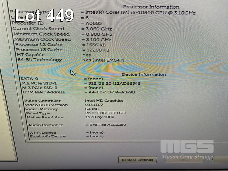 ALL-IN-ONE PC, DELL OPTIPLEX 7480, CORE i5 10500 (10TH GEN) @ 3.1GHz, 8GB DDR4 RAM, 512GB NVMe M.2 SSD, INBUILT 23.8" FHD WIDESCREEN (1920x1080), INTEL HD VIDEO, WEBCAM, 5 x USB, 1 x USB-C, WINDOWS 11 HOME INSTALLED, KEYBOARD & MOUSE S/N:1TJHL83