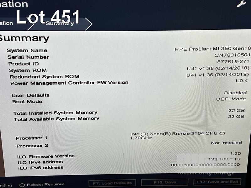 TOWER SERVER, HPE PROLIANT ML350 GEN10, XEON BRONZE 3104 @ 1.7GHz, 32GB RAM, 4 x 3.8TB SSD, 2 x 1.9TB SSD S/N:CN7831050J