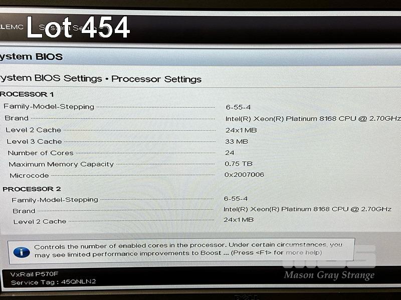 RACKMOUNT SERVER, DELL EMC VXRAIL P570F, 2U, 2 x XEON PLATINUM 8168 @ 2.7GHz, 128GB ECC DDR4 RAM, 2 x 800GB SAS (12Gbps) HDD, 2 x 1100W PSU (NO CABLES) (NOTE: MISSING SD CARD MEDIA) S/N:45QNLN2