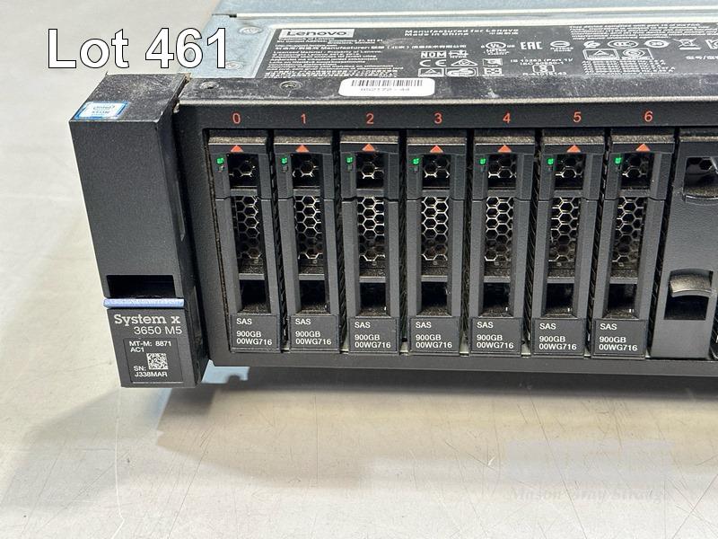 RACKMOUNT SERVER, LENOVO SYSTEM X 3650 M5, 2U, TYPE 8871, XEON E5-2620v4 @ 2.1GHz, 32GB ECC DDR4 RAM, 7 x 900GB SAS HDD, 2 x PSU (NO CABLES) S/N:J338MAR