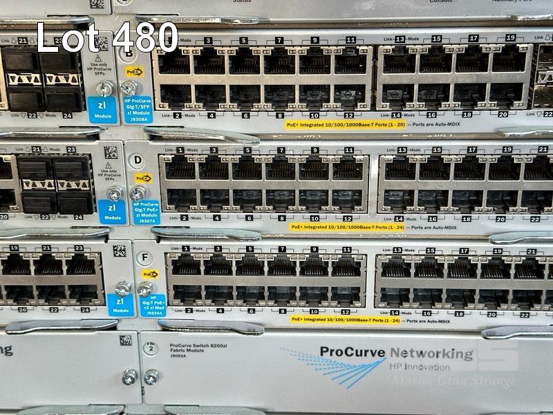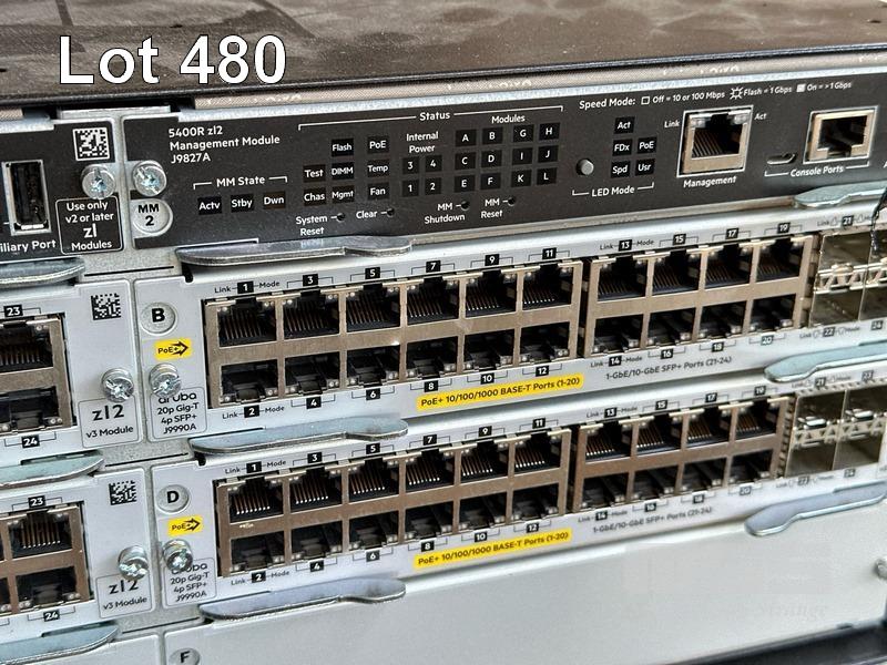 1 x HP PROCURVE 8212zl J9091A NETWORK SWITCH CHASSIS & CONTENTS 1 x HPE ARUBA 5406R zl2 J9850A NETWORK SWITCH CHASSIS, 5400 zl2 J9827A MANAGMENT MODULES & CONTENTS 1 x HPE ARUBA NETWORK SWITCH CHASSIS (MISSING FRONT PANEL), 5400R zl2 J9827A MANAGMENT MODULES & CONTENTS