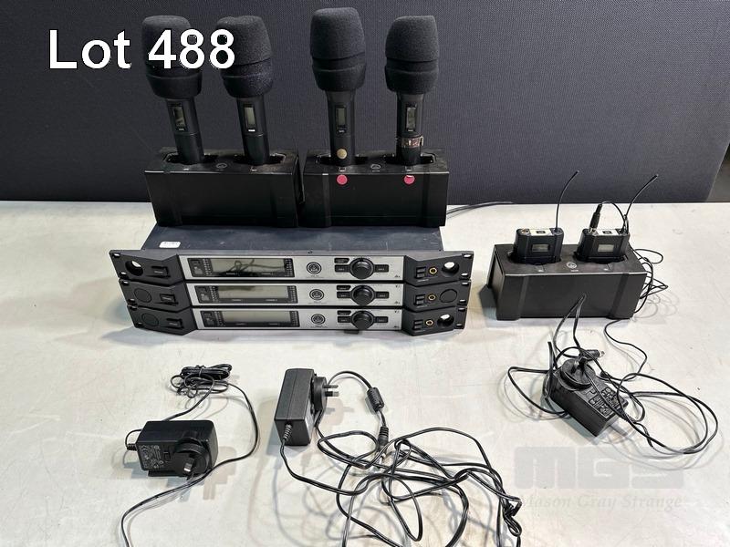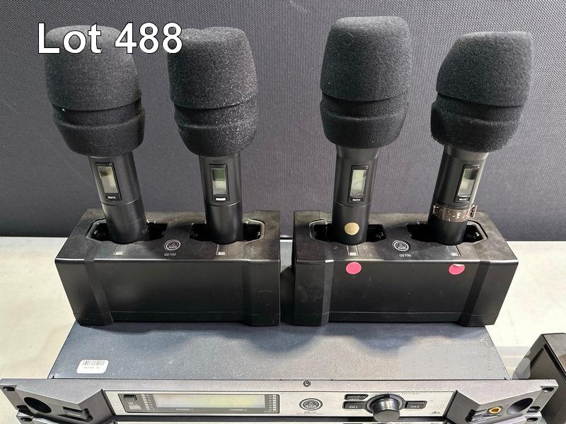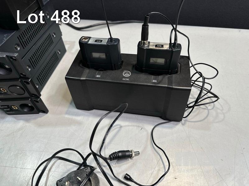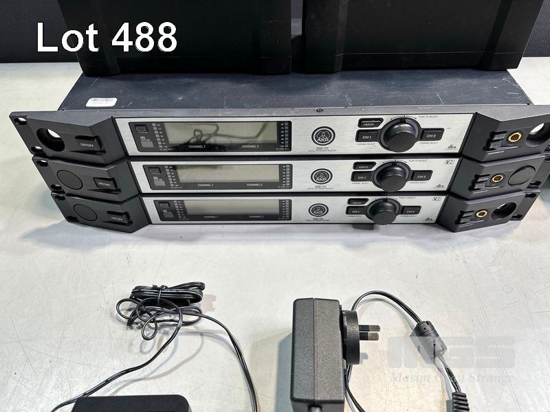 3 x AKG DSR700 DIGITAL WIRELESS STATIONARY RECEIVERS WITH 4 x DHT700 HANDHELD MICROPHONES, 2 x DPT700 BODYPACK TRANSMITTERS, 1 x LAPEL MICROPHONE, 3 x CU700 CHARGING UNITS & POWER SUPPLIES