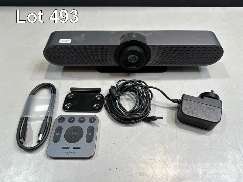 LOGITECH MEETUP CAMERA & SPEAKERPHONE UNIT, MODEL V-R0007 WITH REMOTE, POWER SUPPLY & USB-C CABLE