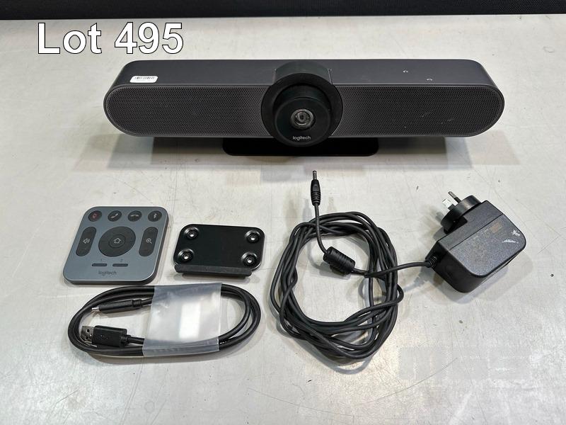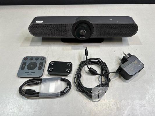 LOGITECH MEETUP CAMERA & SPEAKERPHONE UNIT, MODEL V-R0007 WITH REMOTE, POWER SUPPLY & USB-C CABLE