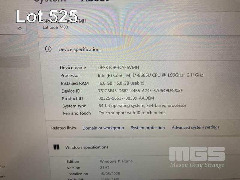 LAPTOP, DELL LATITUDE 7400, CORE i7 8665U (8TH GEN) @ 1.9GHz, 16GB DDR4 RAM, 512GB NVMe M.2 SSD, 14" TOUCHSCREEN (1920x1080), INTEL UHD GRAPHICS 620, Wi-Fi, BLUETOOTH, WINDOWS 11 HOME INSTALLED (NO POWER SUPPLY) (NOTE: BATTERY NOT HOLDING CHARGE, MINOR DAMAGE TO CASING, SPOT ON SCREEN) S/N:J42WP13