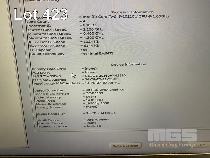 LAPTOP, DELL LATITUDE 5410, CORE i5 10210U (10TH GEN) @ 1.6GHz, 8GB DDR4 RAM, 512GB NVMe M.2 SSD, 14" WIDESCREEN (1920x1080), INTEL UHD GRAPHICS, Wi-Fi, BLUETOOTH, WINDOWS 11 HOME INSTALLED (NO POWER SUPPLY) (NOTE: BATTERY NOT HOLDING CHARGE, CASING PEELING) S/N:3NS4Q73