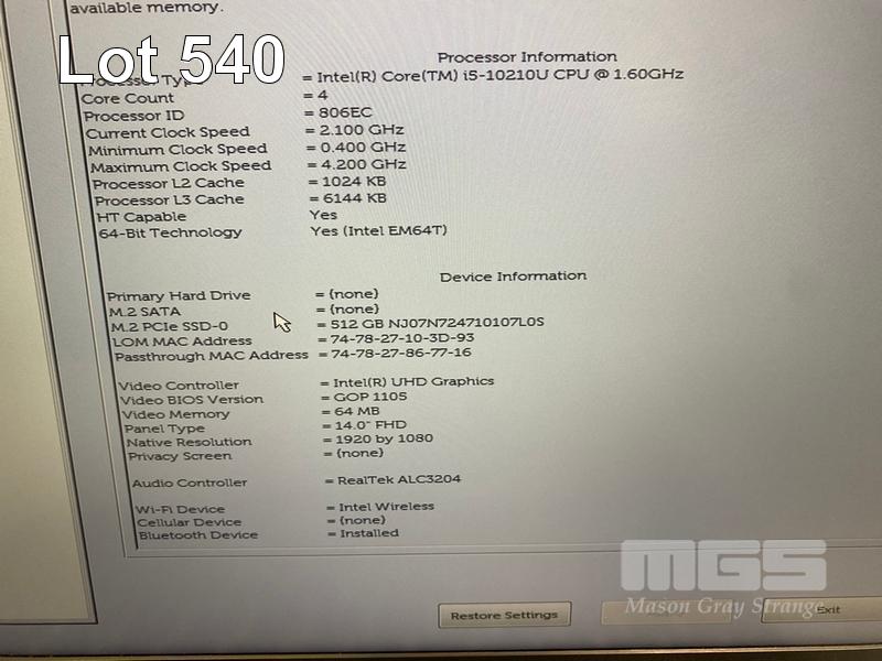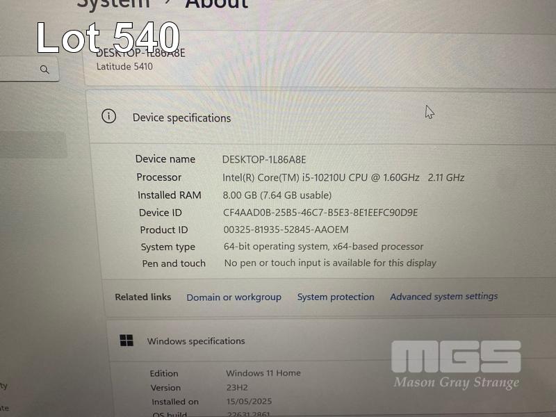 LAPTOP, DELL LATITUDE 5410, CORE i5 10210U (10TH GEN) @ 1.6GHz, 8GB DDR4 RAM, 512GB NVMe M.2 SSD, 14" WIDESCREEN (1920x1080), INTEL UHD GRAPHICS, Wi-Fi, BLUETOOTH, WINDOWS 11 HOME INSTALLED (NO POWER SUPPLY) (NOTE: BATTERY NOT HOLDING CHARGE, SMALL DENT IN CASING, MINOR MARKS ON SCREEN) S/N:59DJQ73