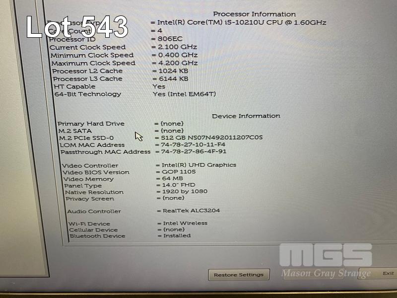 LAPTOP, DELL LATITUDE 5410, CORE i5 10210U (10TH GEN) @ 1.6GHz, 8GB DDR4 RAM, 512GB NVMe M.2 SSD, 14" WIDESCREEN (1920x1080), INTEL UHD GRAPHICS, Wi-Fi, BLUETOOTH, WINDOWS 11 HOME INSTALLED (NO POWER SUPPLY) (NOTE: BATTERY NOT HOLDING CHARGE, MINOR CASING PEELING) S/N:1JX0R73