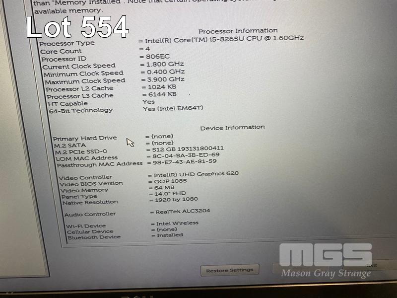LAPTOP, DELL LATITUDE 5400, CORE i5 8265U (8TH GEN) @ 1.6GHz, 8GB DDR4 RAM, 512GB NVMe M.2 SSD, 14" WIDESCREEN (1920x1080), INTEL UHD GRAPHICS 620, Wi-Fi, BLUETOOTH, WINDOWS 11 HOME INSTALLED & POWER SUPPLY (NOTE: MINOR DAMAGE SCREEN FRAME, MARKS ON SCREEN) S/N:25CJZY2