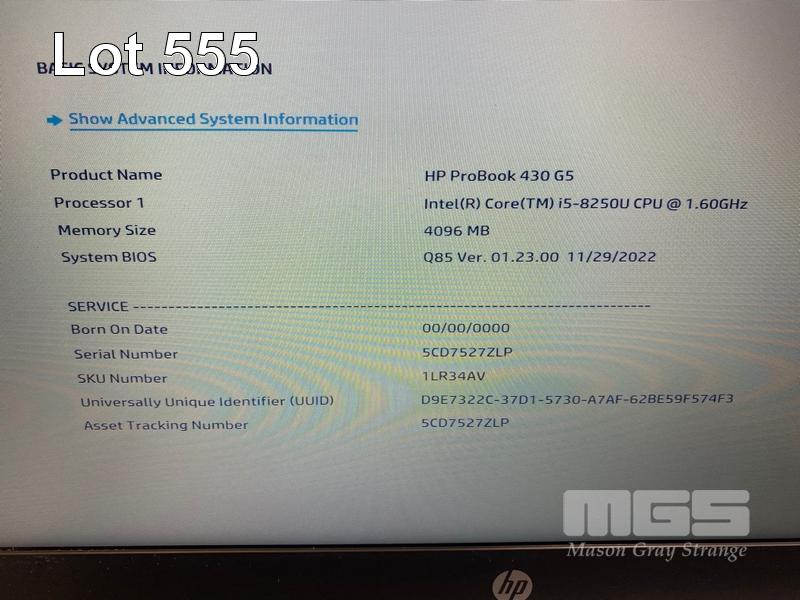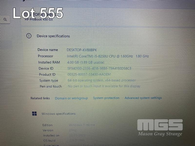 LAPTOP, HP PROBOOK 430 G5, CORE i5 8250U (8TH GEN) @ 1.6GHz, 4GB DDR4 RAM, 128GB M.2 SSD, 13.3" WIDESCREEN (1366x768), INTEL UHD GRAPHICS 620, Wi-Fi, BLUETOOTH, WINDOWS 11 HOME INSTALLED (NO POWER SUPPLY) (NOTE: MINOR DAMAGE TO CASING, MARKS ON SCREEN) S/N:5CD7527ZLP