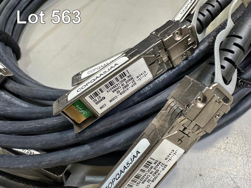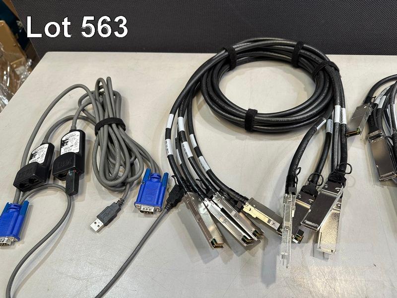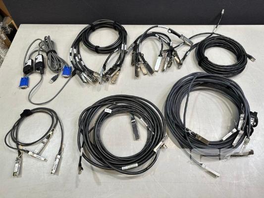 QTY ASST CABLES INC - CISCO SFP-H10GB-CU1M - CISCO SFP-H10GB-CU5M - NETAPP 112-00176 QSFP 0.5m - NETAPP 112-00177 QSFP 2m - IBM USB KVM CONVERSION CABLE
