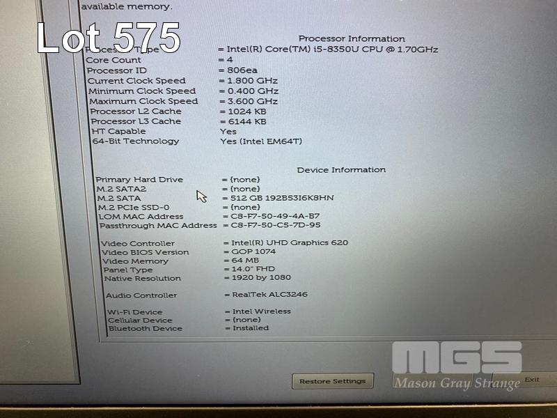 LAPTOP, DELL LATITUDE 5490, CORE i5 8350U (8TH GEN) @ 1.7GHz, 8GB DDR4 RAM, 512GB M.2 SSD, 14" WIDESCREEN (1920x1080), INTEL UHD GRAPHICS 620, Wi-Fi, BLUETOOTH, WINDOWS 11 HOME INSTALLED & POWER SUPPLY S/N:D2HDWT2