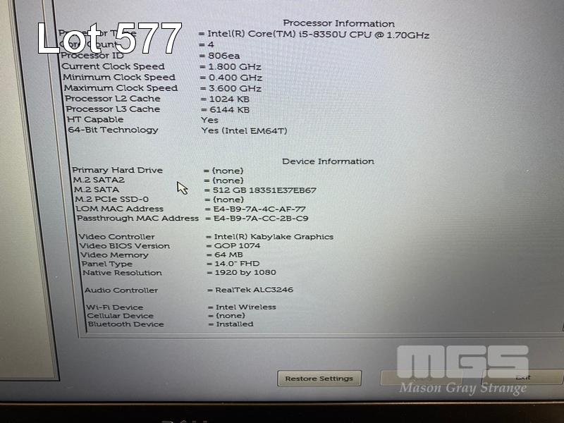 LAPTOP, DELL LATITUDE 5490, CORE i5 8350U (8TH GEN) @ 1.7GHz, 8GB DDR4 RAM, 512GB M.2 SSD, 14" WIDESCREEN (1920x1080), INTEL UHD GRAPHICS 620, Wi-Fi, BLUETOOTH, WINDOWS 11 HOME INSTALLED (NO POWER SUPPLY) (NOTE: BIOS FAULT) S/N:7P6NHR2
