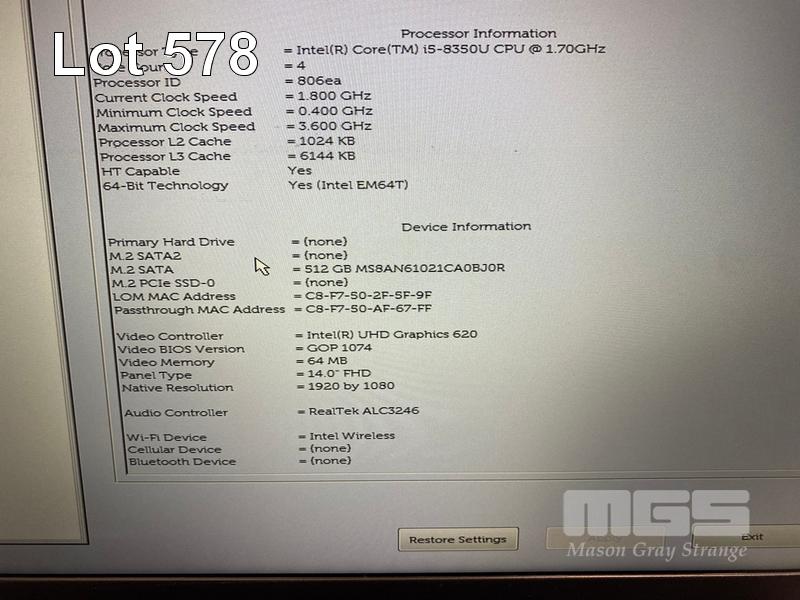 LAPTOP, DELL LATITUDE 5490, CORE i5 8350U (8TH GEN) @ 1.7GHz, 8GB DDR4 RAM, 512GB M.2 SSD, 14" WIDESCREEN (1920x1080), INTEL UHD GRAPHICS 620, Wi-Fi, BLUETOOTH, WINDOWS 11 HOME INSTALLED (NO POWER SUPPLY) (NOTE: BATTERY NOT HOLDING CHARGE, MARKS ON SCREEN) S/N:1740VT2