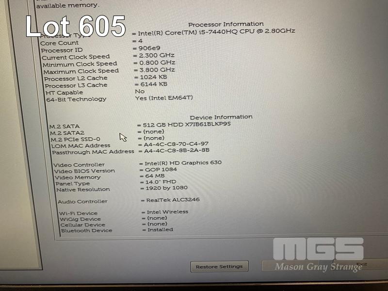 LAPTOP, DELL LATITUDE 5480, CORE i5 7440HQ (7TH GEN) @ 2.8GHz, 8GB DDR4 RAM, 512GB M.2 SSD, 14" WIDESCREEN (1920x1080), INTEL HD GRAPHICS 630, Wi-Fi, BLUETOOTH, WINDOWS 10 HOME INSTALLED & POWER SUPPLY (NOTE: MARKS ON SCREEN) S/N:5BWC3M2