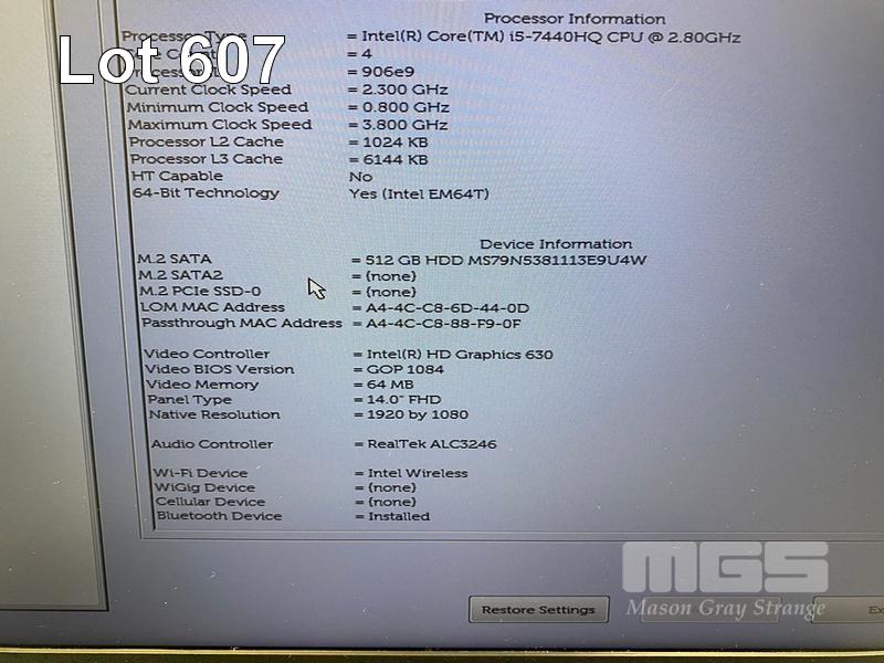 LAPTOP, DELL LATITUDE 5480, CORE i5 7440HQ (7TH GEN) @ 2.8GHz, 8GB DDR4 RAM, 512GB M.2 SSD, 14" WIDESCREEN (1920x1080), INTEL HD GRAPHICS 630, Wi-Fi, BLUETOOTH, WINDOWS 10 HOME INSTALLED & POWER SUPPLY (NOTE: RUBBER EDGING LOOSE ON SCREEN FRAME, MINOR DAMAGE TO CASING) S/N:JHCZ2M2