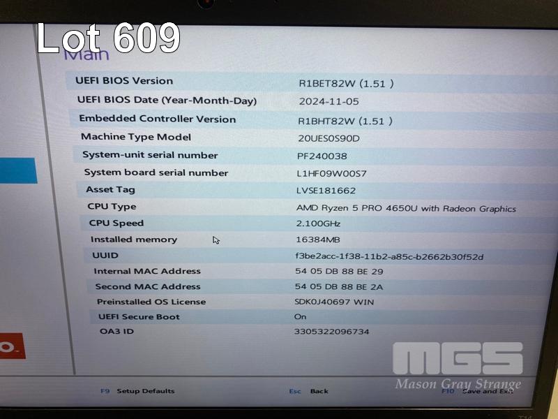LAPTOP, LENOVO THINKPAD T14 Gen1, TYPE 20UE, AMD RYZEN 5 PRO 4650U @ 2.1GHz, 16GB DDR4 RAM, 512GB NVMe M.2 SSD, 14" TOUCHSCREEN (1920x1080), Wi-Fi, BLUETOOTH, WINDOWS 11 PRO INSTALLED (NO USB-C POWER SUPPLY) (NOTE: MARKS ON SCREEN) S/N:PF240038