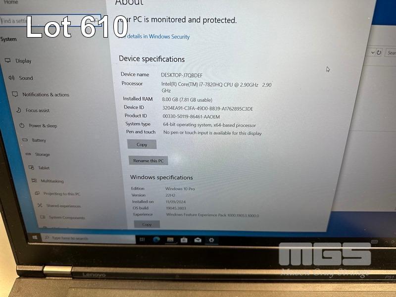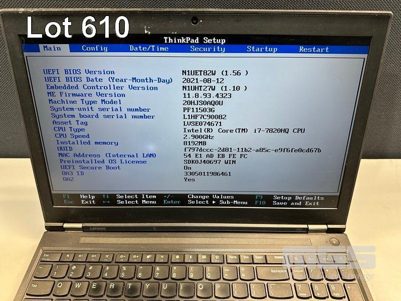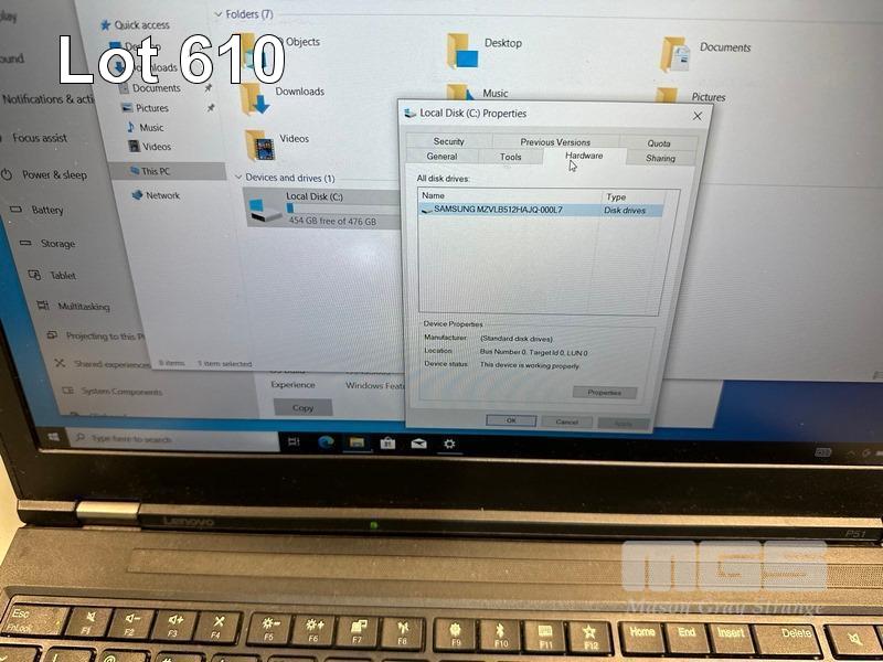LAPTOP, LENOVO THINKPAD P51 MOBILE WORKSTATION, TYPE 20HJ, CORE i7 7820HQ (7TH GEN) @ 2.9GHz, 8GB DDR4 RAM, 512GB NVMe M.2 SSD, 15.6" WIDESCREEN (1920x1080), 4GB NVIDIA QUADRO M2200 VIDEO, Wi-Fi, BLUETOOTH, WINDOWS 10 PRO INSTALLED (NO POWER SUPPLY) (NOTE: MARKS & SPOTS ON SCREEN) S/N:PF11503G