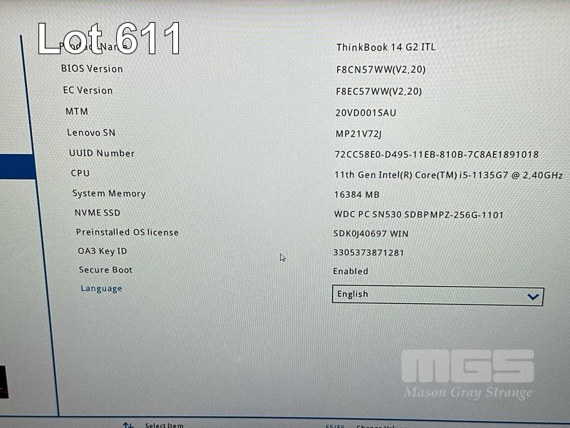 LAPTOP, LENOVO THINKBOOK 14 G2 ITL, TYPE 20VD, CORE i5 1135G7 (11TH GEN) @ 2.4GHz, 16GB DDR4 RAM, 256GB NVMe SSD, 14" WIDESCREEN (1920x1080), INTEL IRIS Xe GRAPHICS, Wi-Fi, BLUETOOTH, WINDOWS 11 PRO INSTALLED & USB-C POWER SUPPLY (NOTE: MAJOR CASING DAMAGE, BATTERY NOT CHARGING) S/N:MP21V72J